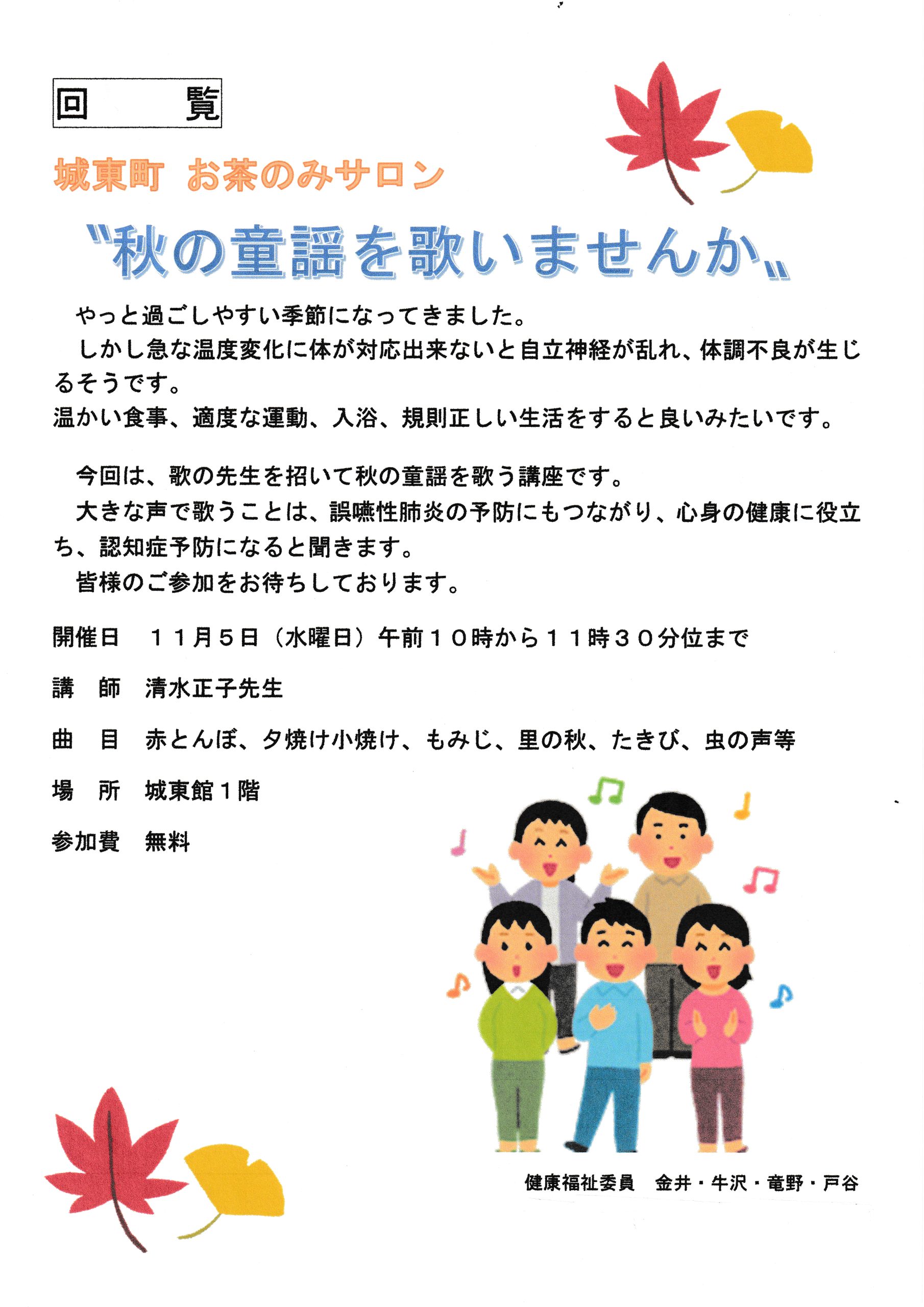 11月5日にお茶のみサロンを開催しますので、ご参加下さい。