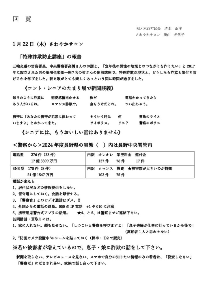 1/22(木) さわやかサロン「特殊詐欺防止講座」実施報告